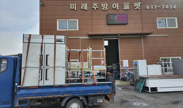 저희 미래키친아울렛은 각종 주방의 중고제품을 매입하여 납품하고 있습니다.그래서 이번에는 동탄에서 주방기구를 납품했는데요.점주가 저희와 사전 소통을 통해 제작한 분식 다이 세트에서 45박스 1/2(냉장/냉동)와 린나이 플라이어, 정제기를 납품하고 있습니다.분식다이의 구성은 떡볶이 플레이트 2개, 어묵, 어묵 조리 세트, 맨 오른쪽 원형 아궁이는 육수를 담기 위한 용도로 제작하였습니다.